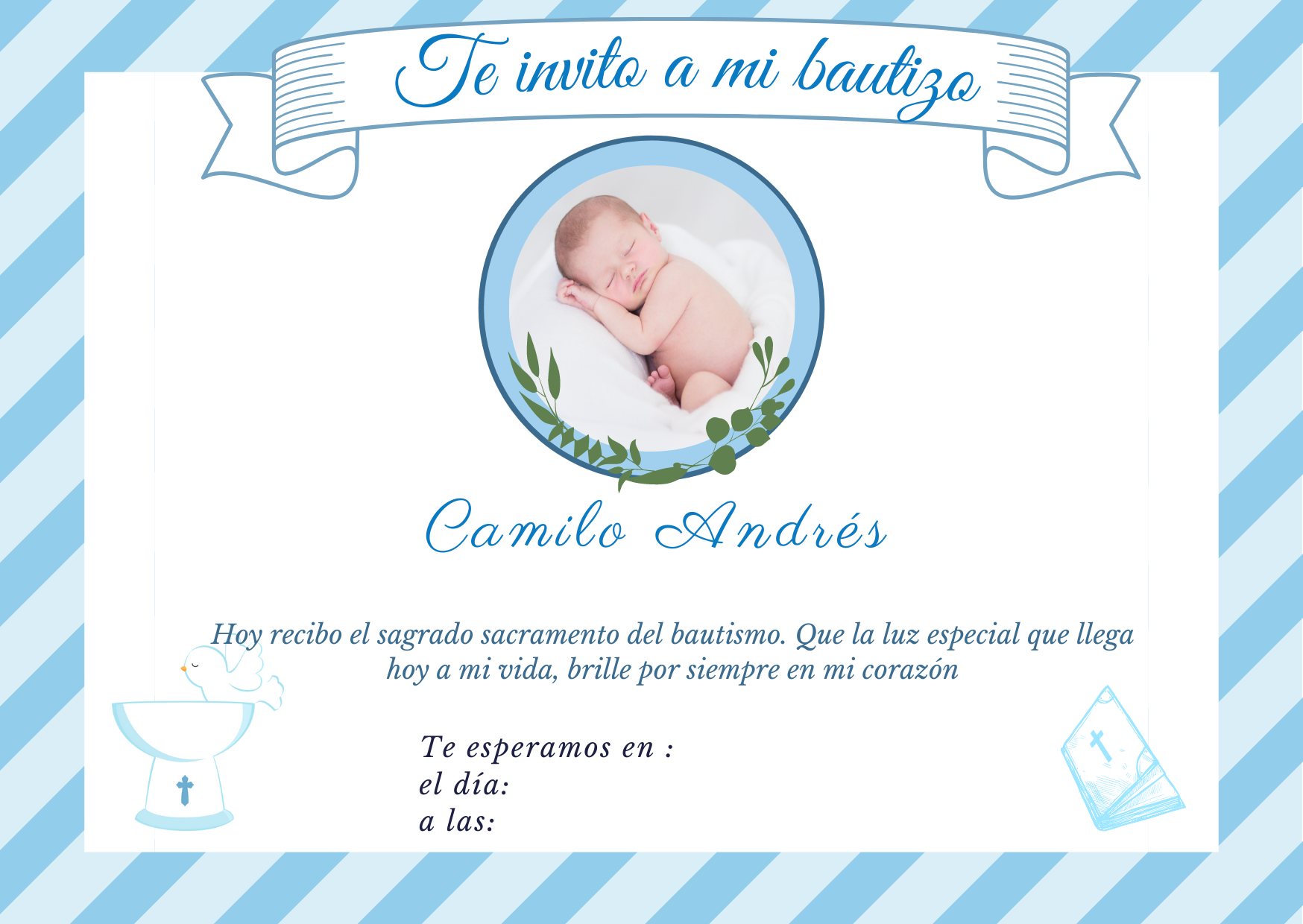 La invitación se personaliza con los datos que el cliente nos envía. Puede incluir fotografía. Se envía por WhatsApp o correo según lo requiera y en formato jpg, png o pdf. No se entrega de forma física ya que es digital.