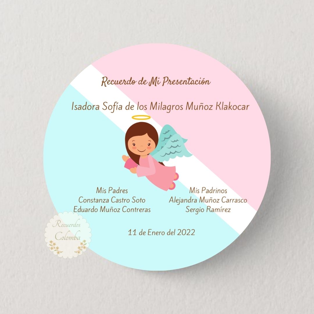 Recuerdo magnético redondo, especial para el refrigerador, mide 7.5 cm de diámetro aprox, el diseño puede ser diferente de la imagen, el texto es a elección. Incluye bolsita de organza.
