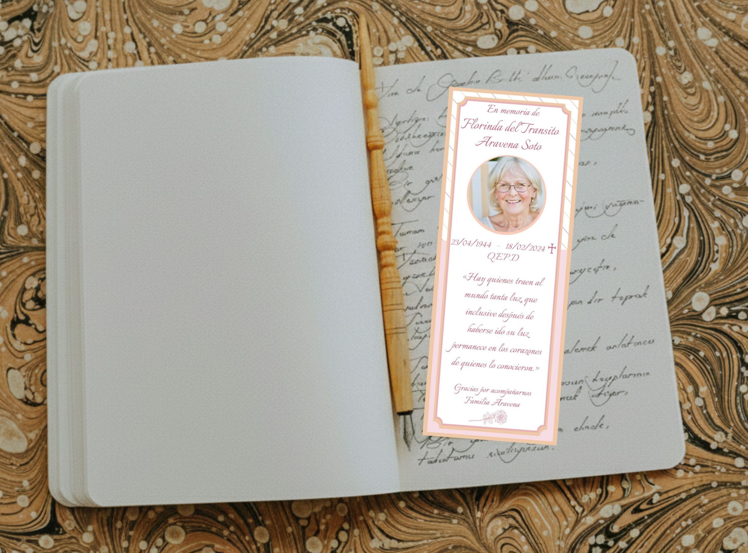 El marcador mide 14 × 5 cm aprox. Es impreso alta calidad en papel opalina extrablanco, ademas viene plastificado para una mayor durabilidad. El texto, color de borde e imagen pueden ser reemplazados por los que usted nos indique, también pueden incluir foto sin alterar su valor.