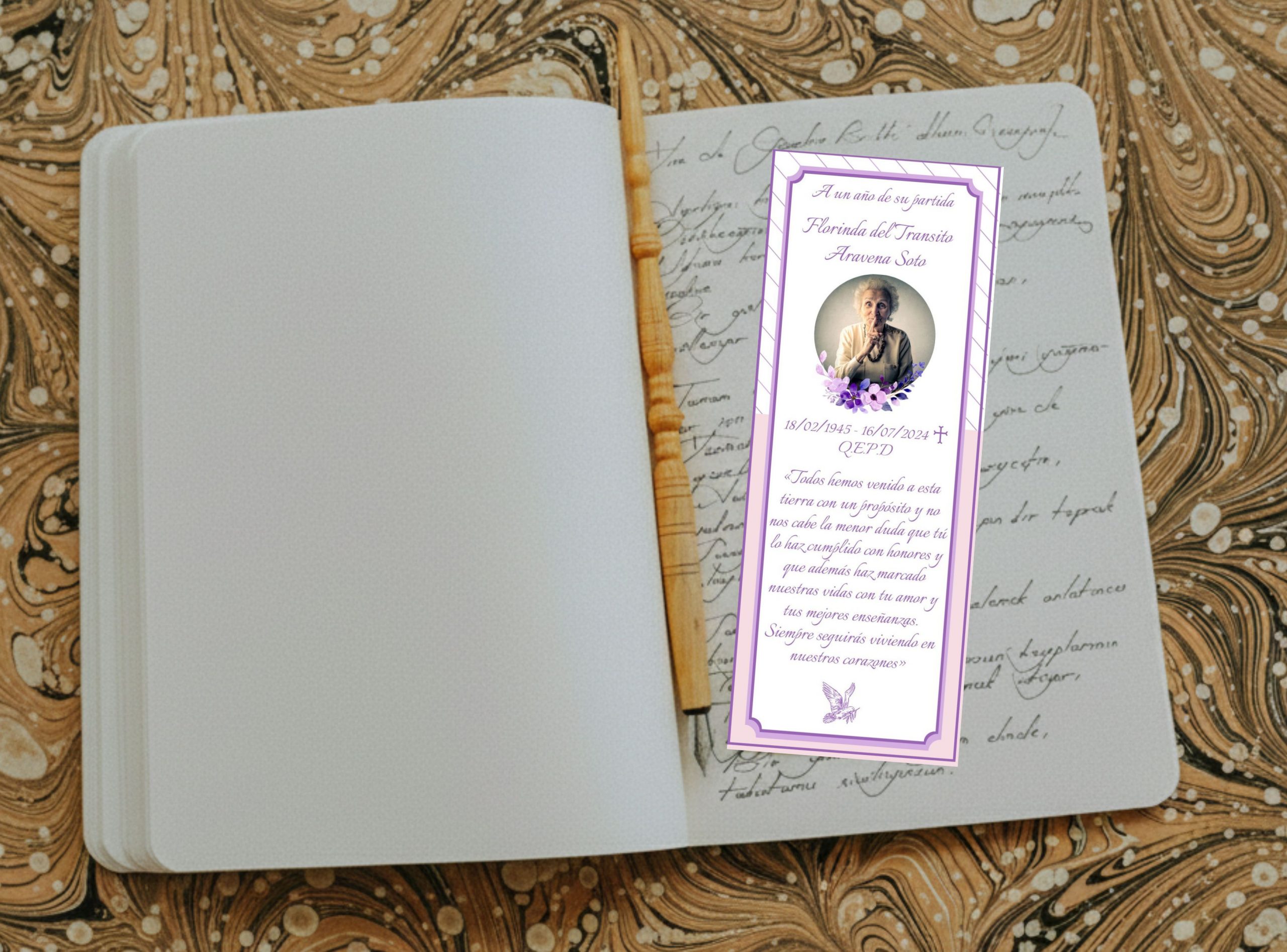 El marcador mide 14 × 5 cm aprox. Es impreso alta calidad en papel opalina extrablanco, ademas viene plastificado para una mayor durabilidad. El texto, color de borde e imagen pueden ser reemplazados por los que usted nos indique, también pueden incluir foto sin alterar su valor.