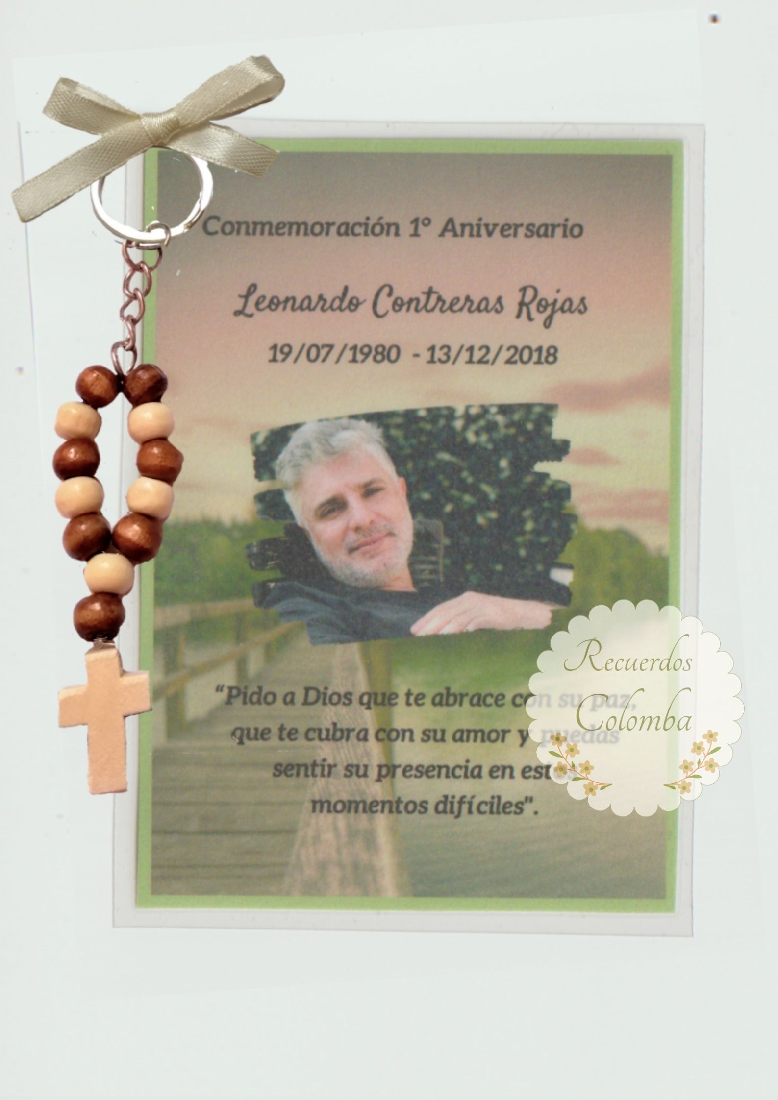 El santito mide 12.5 × 8.5 cm aprox. Es impreso alta calidad en papel opalina extrablanco, ademas viene plastificado para una mayor durabilidad. El texto, color de borde e imagen pueden ser reemplazados por los que usted nos indique, también pueden incluir foto sin alterar su valor. El denario es de perlas de vidrio y cuerpo metálico