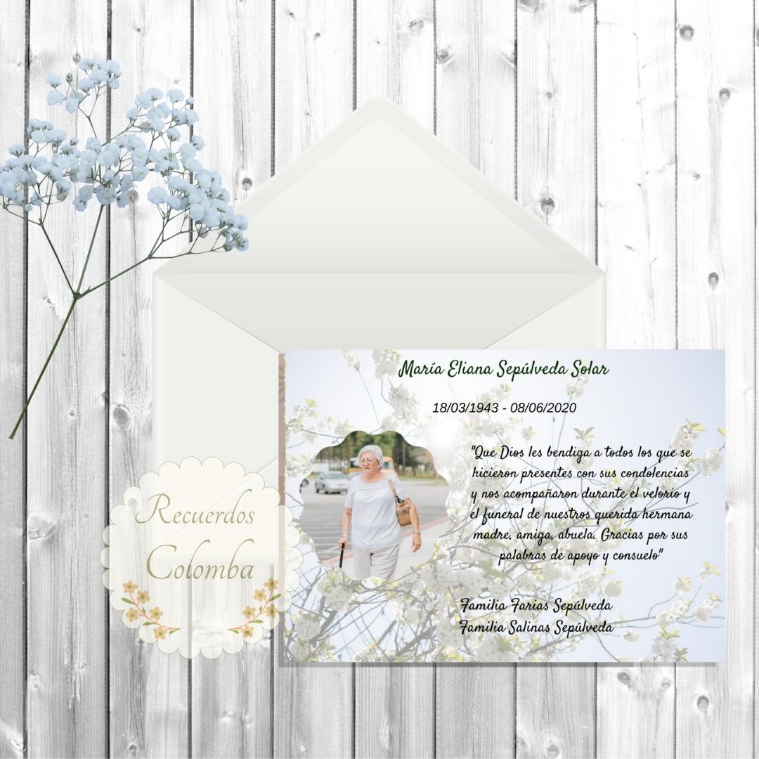 Tarjeta agradecimientos condolencias física o digital 22
